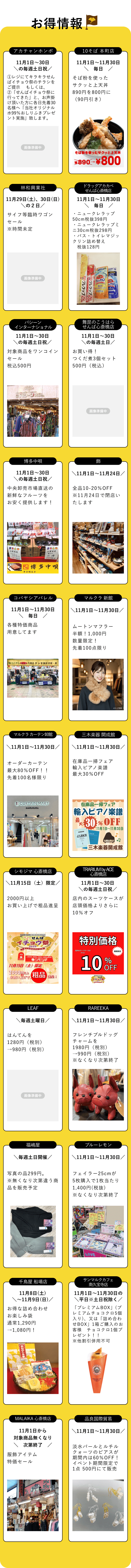 各お店のお得なサービス内容は下記よりご覧くだいませ!
