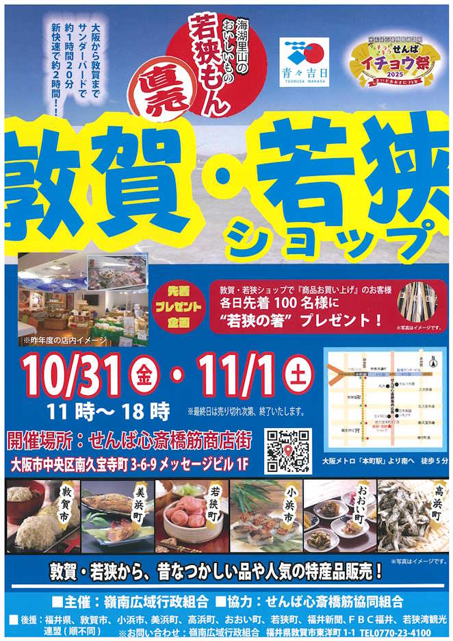 10月31日(金)と11月1日(土)、メッセージビル1階で「敦賀・若狭ショップ」が開催されます。